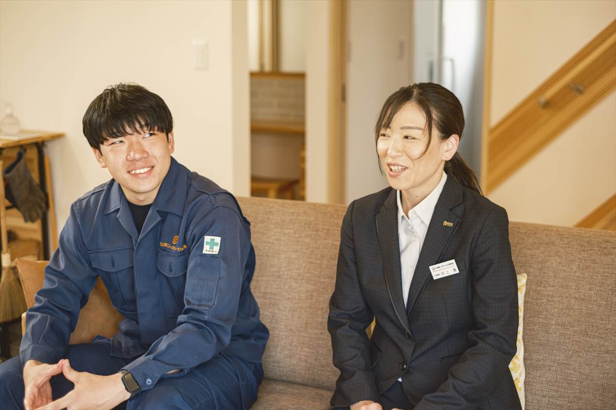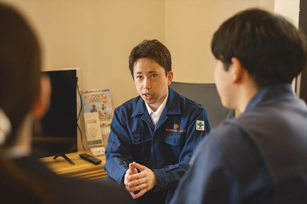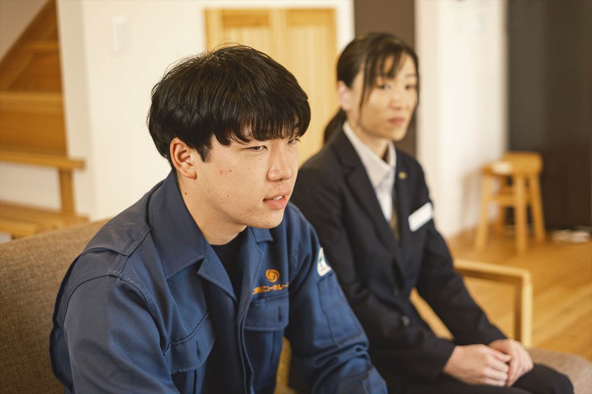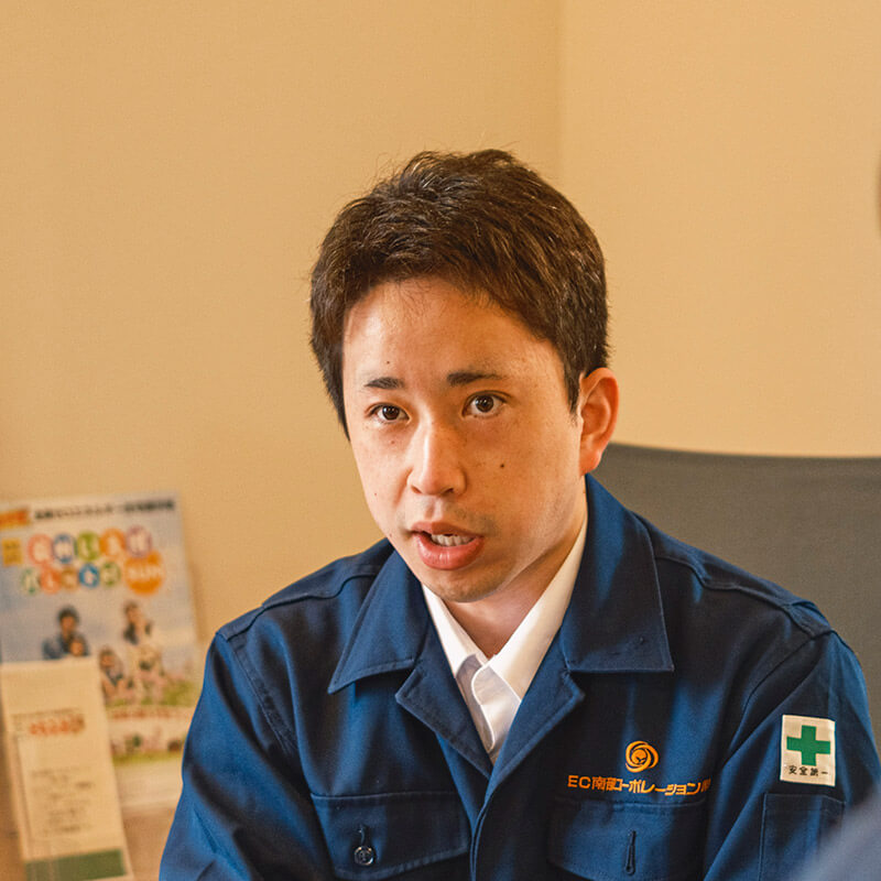 〇〇:経験積んでたわけじゃ全くないんですけど、子育てしながら子どもを育てていくために仕事を探そうと思った時にホームページでEC南部を見て、すごいこの辺の地域に貢献している会社だなって思いました。大きいことをいろいろやっていてすごいなと思っていたら、面接に来てくださいって連絡をいただいて。来てみたら応接室もすごく綺麗で、かっこいい家だな、関わってみたいなと思って。「頑張ったら未経験の人でもやっていけるよ」と言ってくださったので、自分ができるくらい頑張ってみよう、入りたいなって思いました。